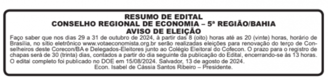 Informativo sobre o pleito eleitoral de 2025 dos Conselhos Regionais de Economia