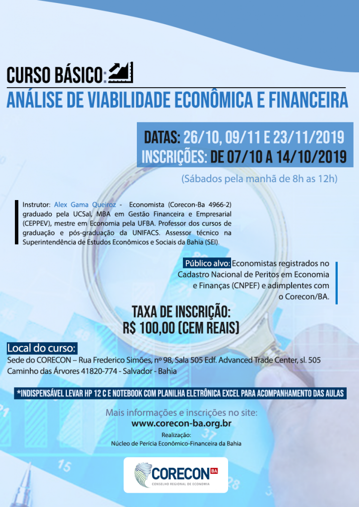 Público alvo: Economistas registrados no Cadastro Nacional de Peritos em Economia e Finanças (CNPEF) e adimplentes com o Corecon/BA.
